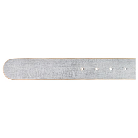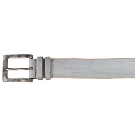 Handgemachter Gürtel in hellgrau. Silbergraue Schliesse mit geprägtem Muster und naturbelassenenKanten. Riemen aus vegetabil gegerbtem Rinderleder. Taillierter SchnittAbmessung: Breite 4 cm x 107 cm Länge 85