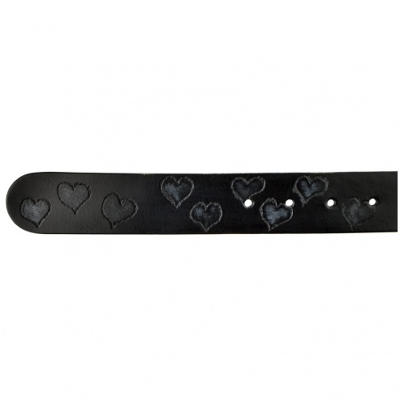 Handgemachter Gürtel mit punzierten weissen Herzen. Mit Leder überzogener Schliesse Riemen aus vegetabil gegerbtem Büffelleder. Taillierter SchnittAbmessung: Breite 3,8cm x 115 cm