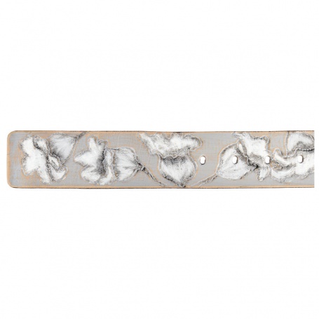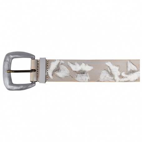Handgemachter Gürtel Punziert mit Glockenblumen. Aufwendig mit Schafsleder überzogene Schliesse Riemen aus vegetabil gegerbtem Büffelleder. Gerader Schnitt.Abmessung: Breite 4,5 cm x Länge 106 cm Bundweite 85